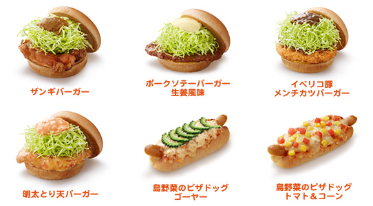 8月24日に発売されたモスバーガー期間限定6種(京都府では全種類2日間販売) | ||